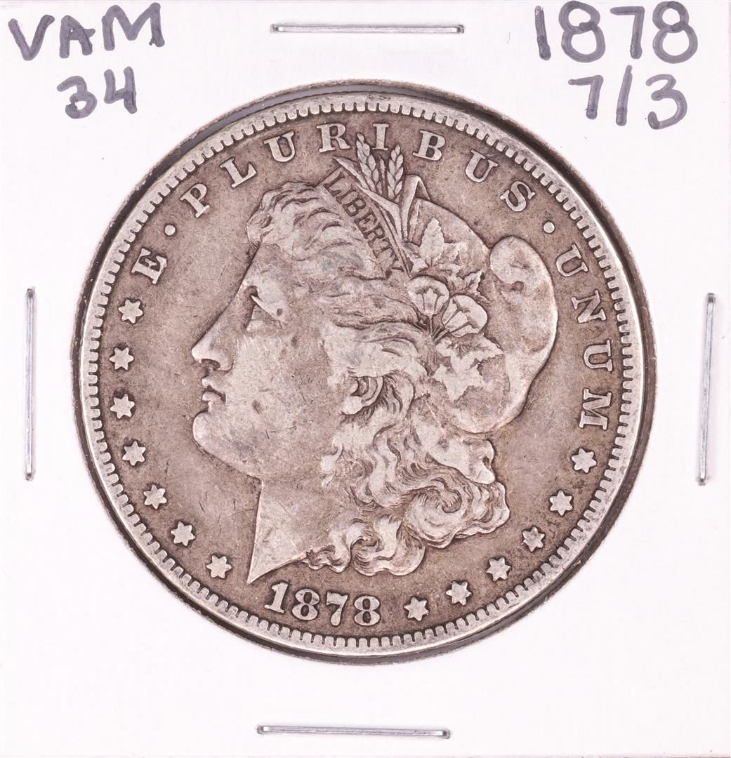 One 1878 7/3 VAM 34 Hot 50 $1 Morgan Silver Dollar Coin.