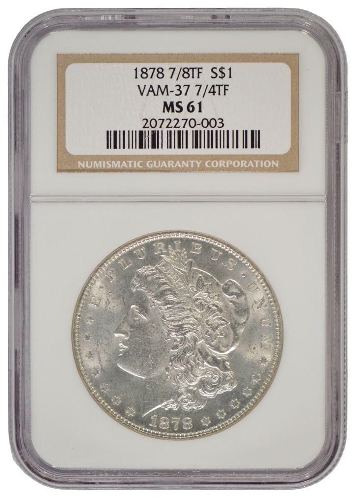 One 1878 7/8 $1 Morgan Silver Dollar Coin Vam 37 NGC MS61.
