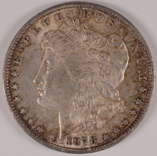 1878 7/8 F MORGAN SILVER DOLLAR, MS-64 ORIGINAL WITH COLOR!