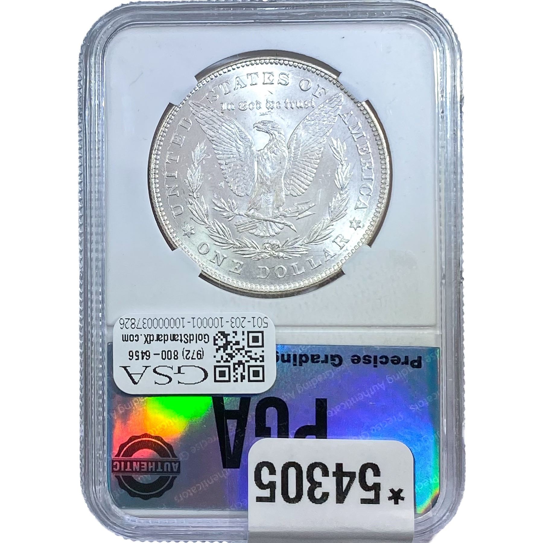 e. Coins sold referencing a third-party grading service are sold “AS IS” without any express or implied warranty, except for a guarantee by GSA that they are genuine. Removal or alteration of the holder, voids all of Bidder’s claims concerning that Product. Certain warranties may be available from the grading services and Bidders are referred to them for further details: Numismatic Guaranty Corporation (NGC), PO Box 4776, Sarasota, FL 34230, www.ngccoin.com/services/writtenguarantee.asp; Professional Coin Grading Services (PCGS), PO Box 9458, Newport Beach, CA 92658, www.pcgs.com/guarantee.html; ANACS, 6555 S. Kenton St., Ste. 303, Englewood, CO 80111; and Independent Coin Grading Co. (ICG), 7901 East Bellview, Ave., Suite 50, Englewood, CO 80111.