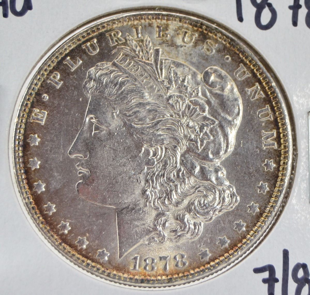 This Uncirculated 1878 7/8 Tail Feather happened because The President at the time did not like the previous 8 tail feather version so he instructed the mint to just put 7 tail feathers over the 8.