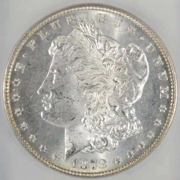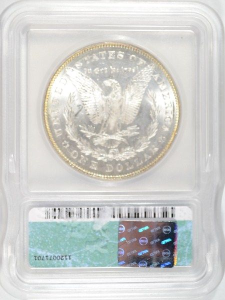 NICE WHITE COIN WITH LIGHT GOLDEN RIM TONE AROUND EDGES ON OBVERSE AND REVERSE. EST. $230 - $250