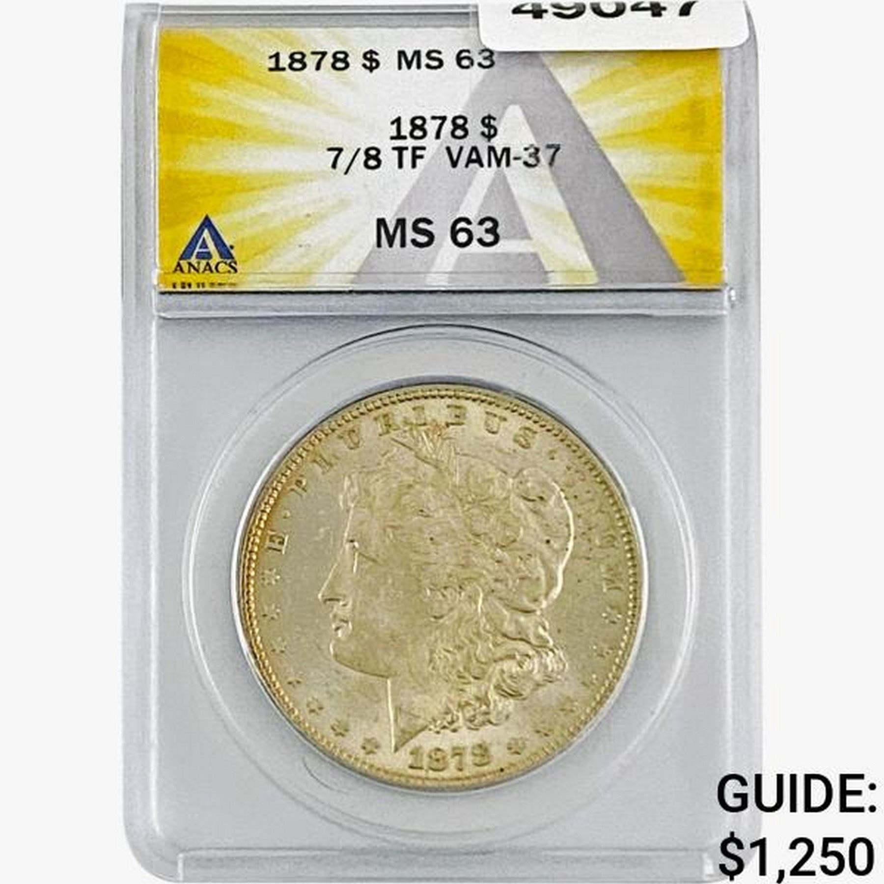 1878 7/8 TF Morgan Silver Dollar ANACS MS63