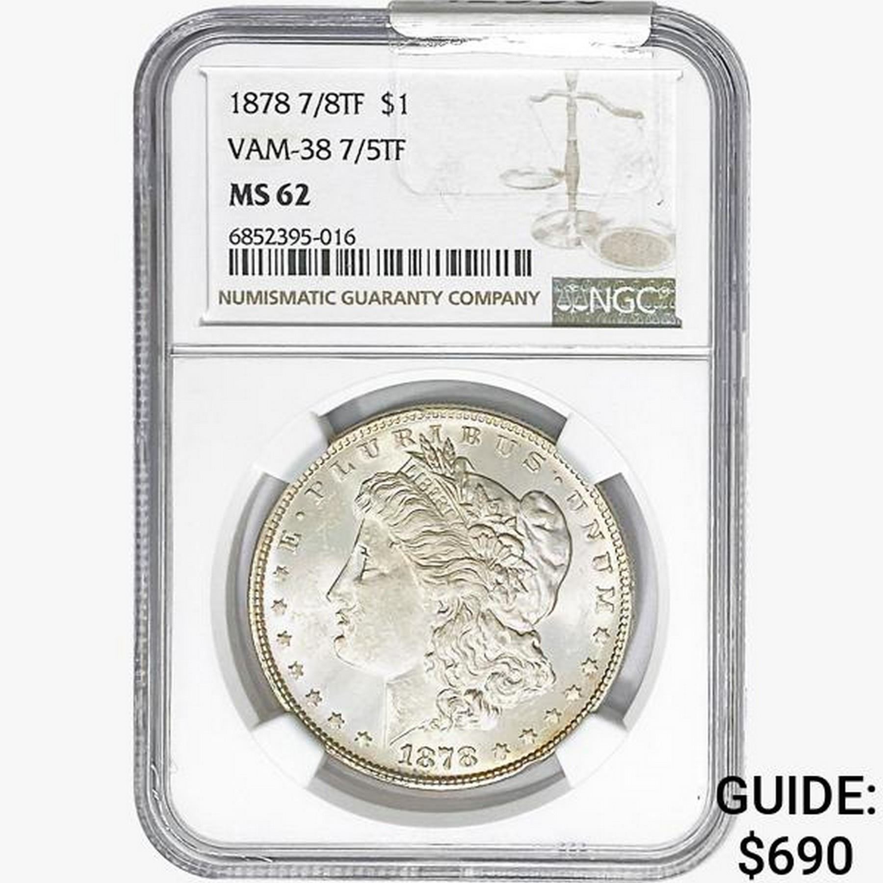 1878 7/8 TF Morgan Silver Dollar NGC MS62 VAM-38 7/5 TF