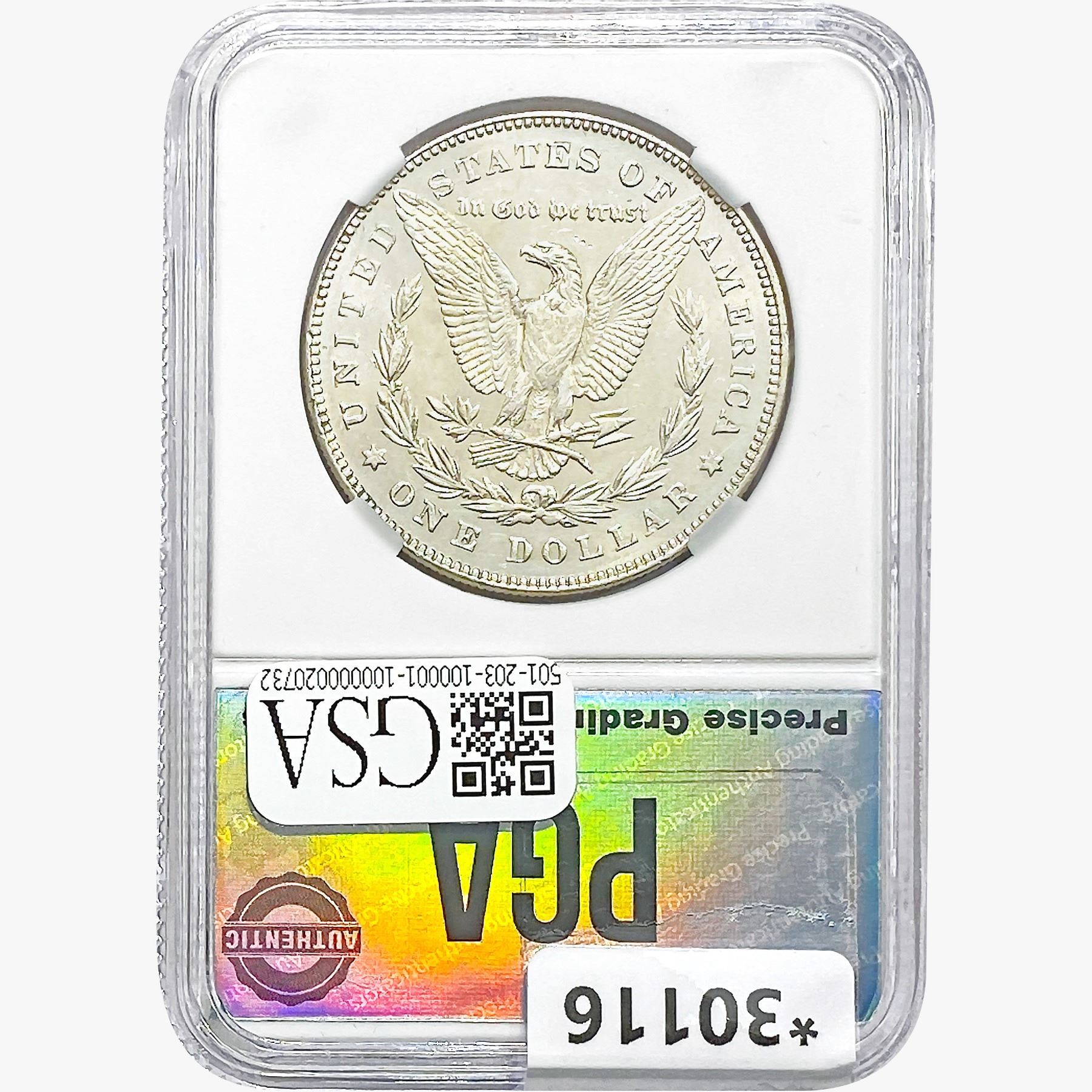 COINS AND CURRENCY LISTED IN GSA’S CATALOG AS GRADED AND ENCAPSULATED BY PCGS, NGC, ANACS, ICG, PCGS CURRENCY, PMG, PCGS BANKNOTE GRADING, CMC OR ANY OTHER THIRD-PARTY GRADING SERVICE ARE LIKEWISE SOLD “AS-IS” EXCEPT AS EXPRESSLY SET FORTH HEREIN. ALL THIRD-PARTY GRADING SERVICE GUARANTEES, INCLUDING AUTHENTICITY, ARE THE SOLE RESPONSIBILITY OF THE THIRD-PARTY GRADING SERVICE AND NOT WARRANTIES OR GUARANTEES OF GSA. BIDDERS SHOULD CONTACT THESE THIRD-PARTY GRADING SERVICES DIRECTLY WITH RESPECT TO ANY CLAIMS OR QUESTIONS THEY MAY HAVE CONCERNING THEIR GUARANTEES AND WARRANTIES. BIDDERS ACKNOWLEDGE AND AGREE THAT AUCTIONEER IS NOT BOUND BY OR LIABLE FOR ANY OPINION OR CERTIFICATION BY ANY THIRD-PARTY GRADING SERVICE. REMOVAL OF A PRODUCT FROM ITS PROTECTIVE CASING OR HOLDER OR ALTERATION OF ANY COIN HOLDER WAIVES ALL RIGHTS CONCERNING THE PRODUCT CONTAINED THEREIN.