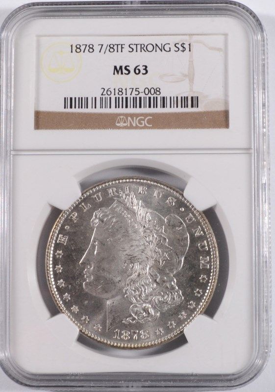 1878 7/8 TF STRONG MORGAN SILVER DOLLAR, NGC MS-63