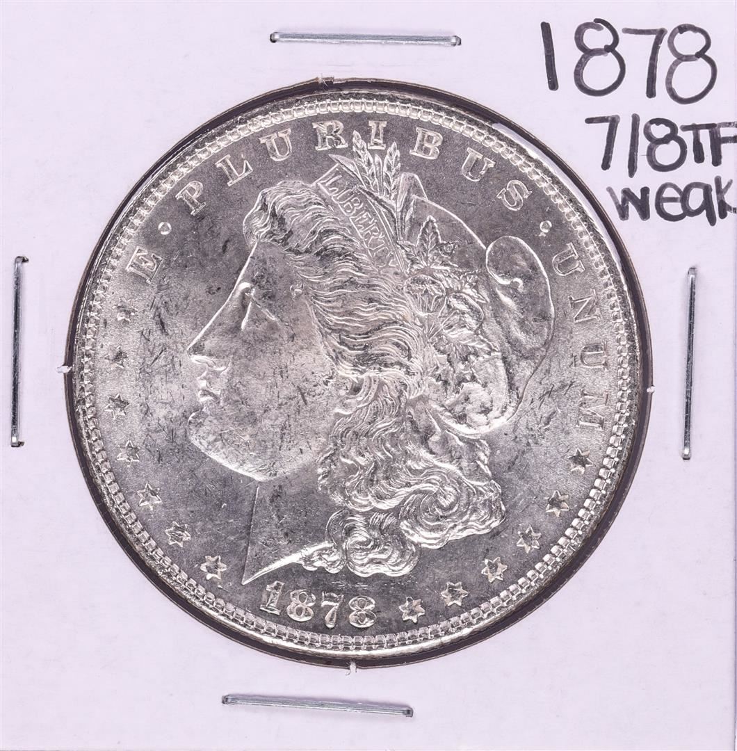 One 1878 7/8 TF Weak $1 Morgan Silver Dollar Coin.