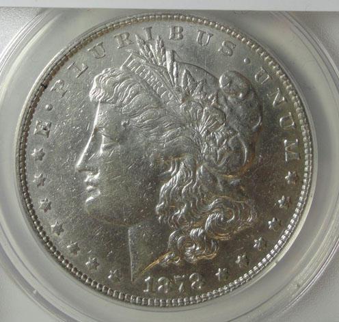1878 7/8 feathers Morgan $ VAM38 ANACS50 cleaned. probably dipped