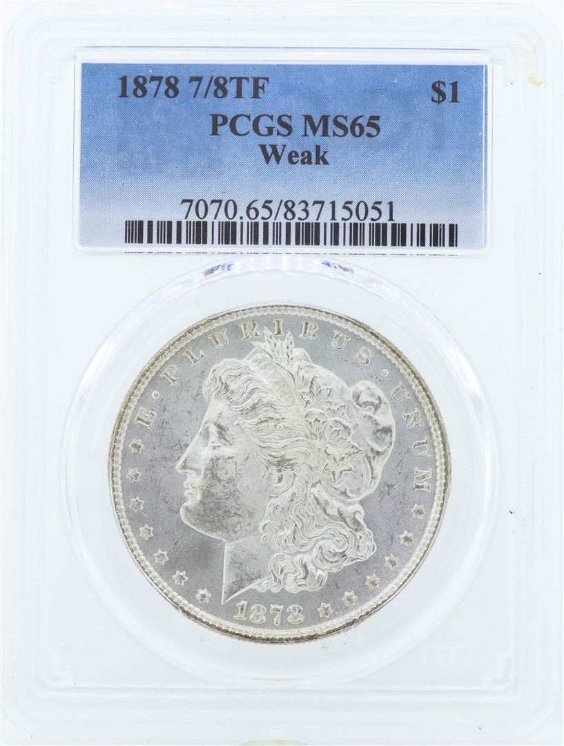 One 1878 7/8TF $1 Morgan Silver Dollar Coin PCGS MS65 Weak. PCGS Certified.