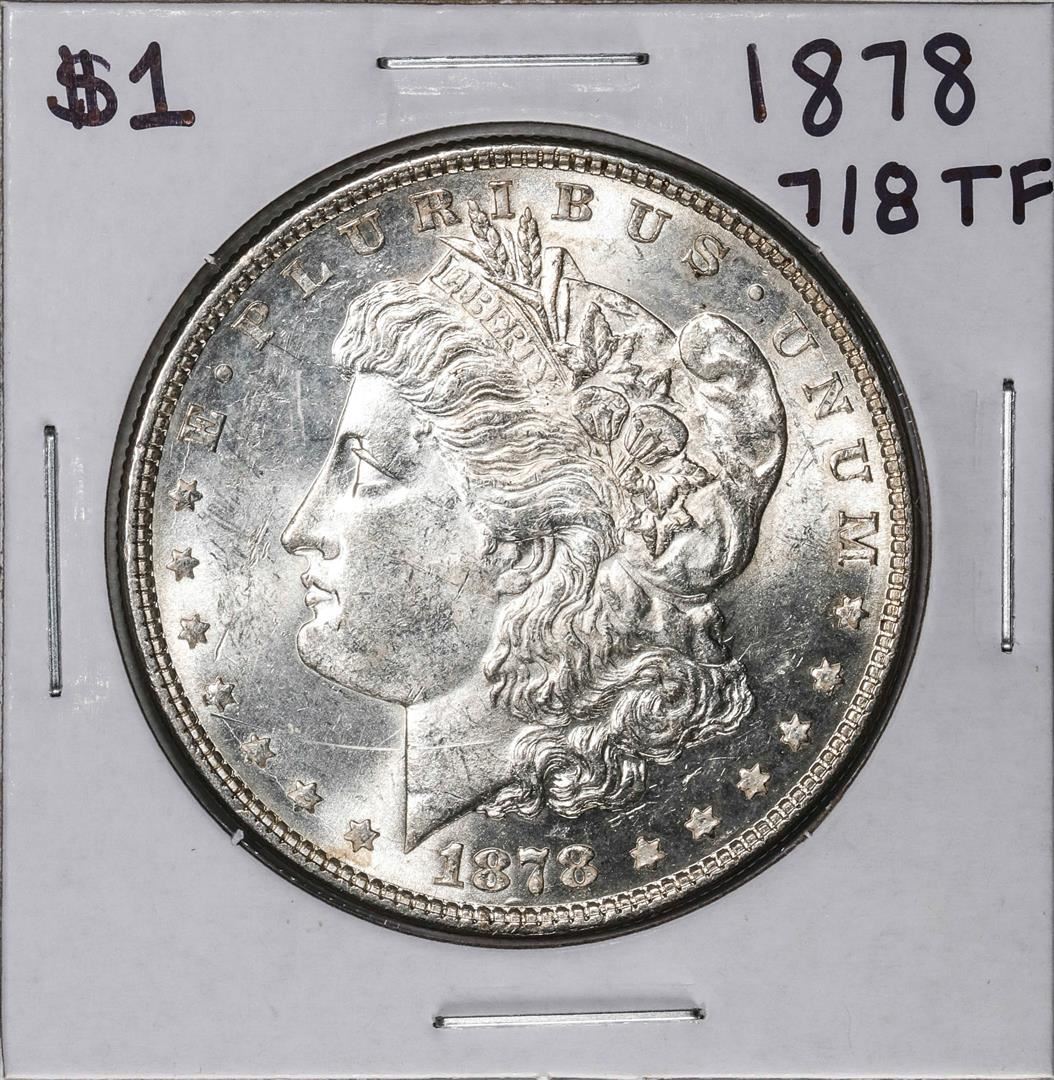 One 1878 7/8TF $1 Morgan Silver Dollar Coin.