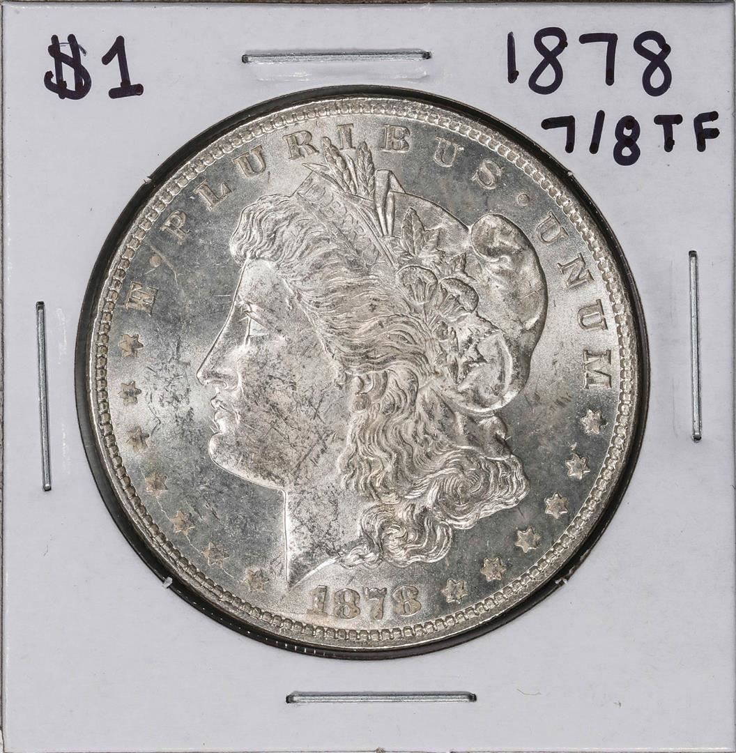 One 1878 7/8TF $1 Morgan Silver Dollar Coin.