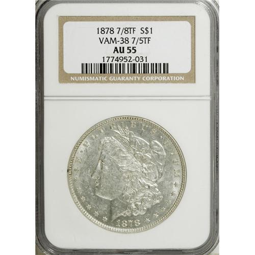 1878 7/8TF $1 Strong AU55 NGC. Vam-38 7/5TF. NGC C