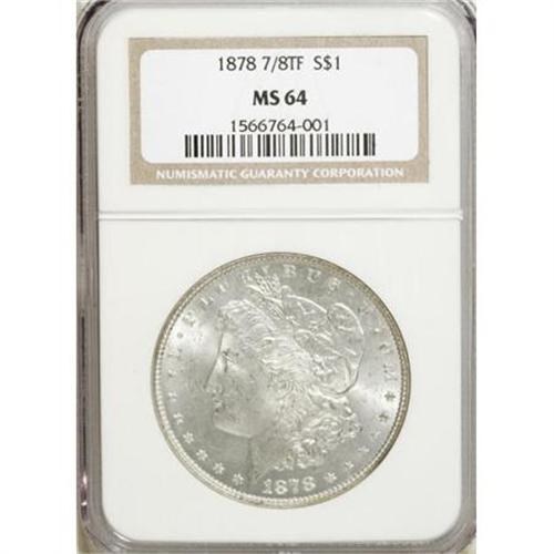 <B>1878 7/8TF $1 Strong MS64 NGC.</B></I> NGC Census: (876/85). PCGS Population (1249/194). Mintage: 544,000. Numismedia Wsl. Price for NGC/PCGS coin in MS64: $400. (#7078)<BR><BR><B>Coin Engraver:</B> George T. Morgan<BR><BR><b>Shipping:</b> Coins & Currency (<a target="_blank" href="http://www.heritageauctions.com/common/shipping.php">view shipping information</a>)