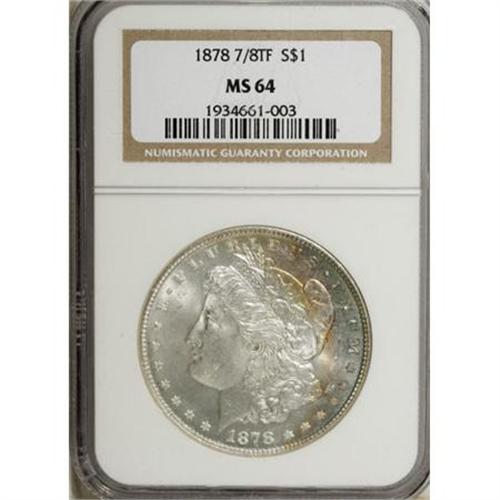 <B>1878 7/8TF $1 Strong MS64 NGC.</B></I> NGC Census: (883/84). PCGS Population (1282/198). Mintage: 544,000. Numismedia Wsl. Price for NGC/PCGS coin in MS64: $420. (#7078)<BR><BR><B>Coin Engraver:</B> George T. Morgan<BR><BR><b>Shipping:</b> Coins & Currency (<a target="_blank" href="http://www.heritageauctions.com/common/shipping.php">view shipping information</a>)