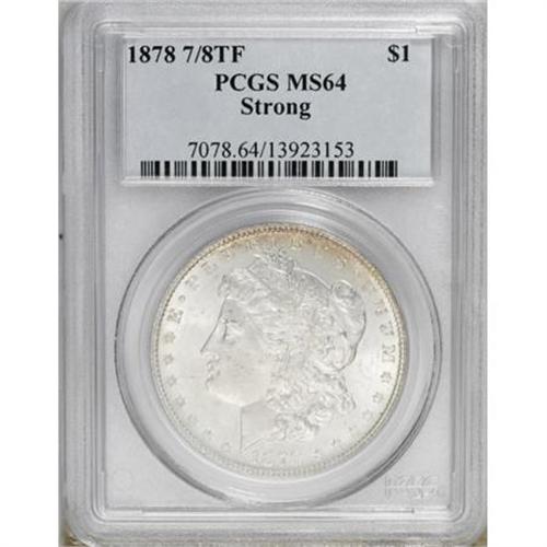 <B>1878 7/8TF $1 Strong MS64 PCGS.</B></I> PCGS Population (1249/194). NGC Census: (876/85). Mintage: 544,000. Numismedia Wsl. Price for NGC/PCGS coin in MS64: $400. (#7078)<BR><BR><B>Coin Engraver:</B> George T. Morgan<BR><BR><b>Shipping:</b> Coins & Currency (<a target="_blank" href="http://www.heritageauctions.com/common/shipping.php">view shipping information</a>)