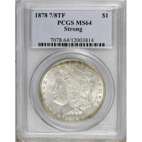 <B>1878 7/8TF $1 Strong MS64 PCGS.</B></I> PCGS Population (1256/195). NGC Census: (877/85). Mintage: 544,000. Numismedia Wsl. Price for NGC/PCGS coin in MS64: $400. (#7078)<BR><BR><B>Coin Engraver:</B> George T. Morgan<BR><BR><b>Shipping:</b> Coins & Currency (<a target="_blank" href="http://www.heritageauctions.com/common/shipping.php">view shipping information</a>)