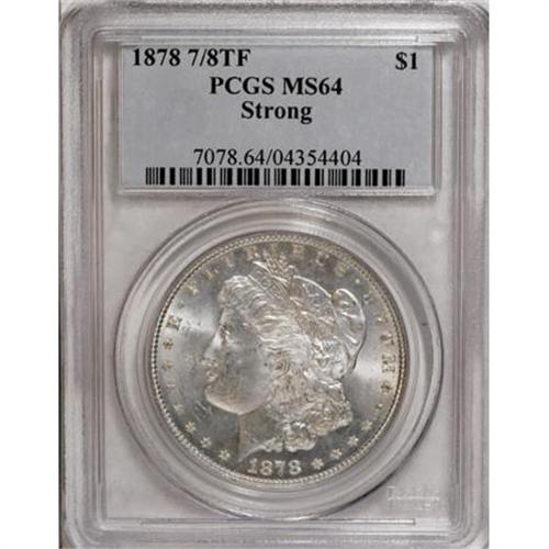 <B>1878 7/8TF $1 Strong MS64 PCGS.</B></I> . PCGS Population (1265/197). NGC Census: (881/84). Mintage: 544,000. Numismedia Wsl. Price for NGC/PCGS coin in MS64: $400. (#7078)<BR><BR><B>Coin Engraver:</B> George T. Morgan<BR><BR><b>Shipping:</b> Coins & Currency (<a target="_blank" href="http://www.heritageauctions.com/common/shipping.php">view shipping information</a>)