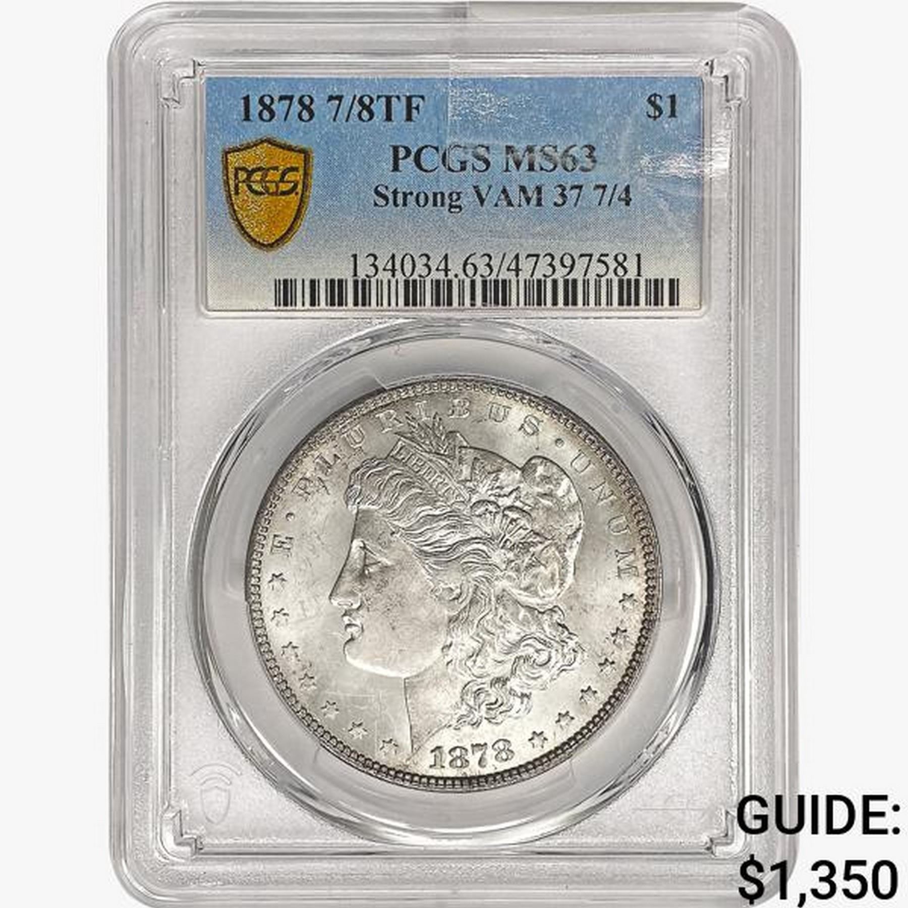 1878 7/8TF Morgan SILV $1 PCGS MS63 Strong VAM37 7