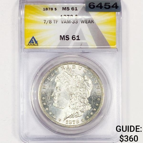 1878 7/8TF Morgan Silver Dollar ANACS - MS61