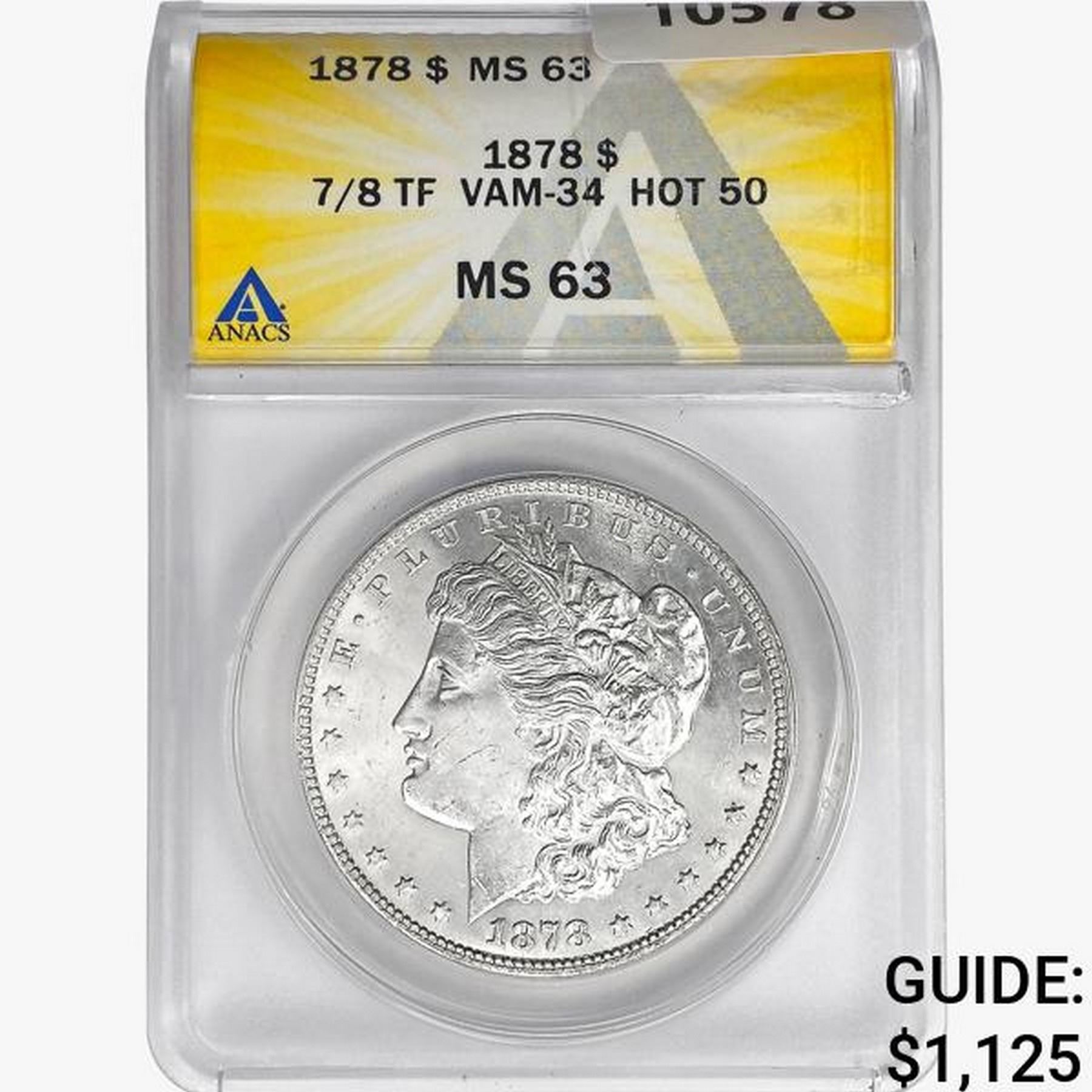 1878 7/8TF Morgan Silver Dollar ANACS MS63 VAM-34