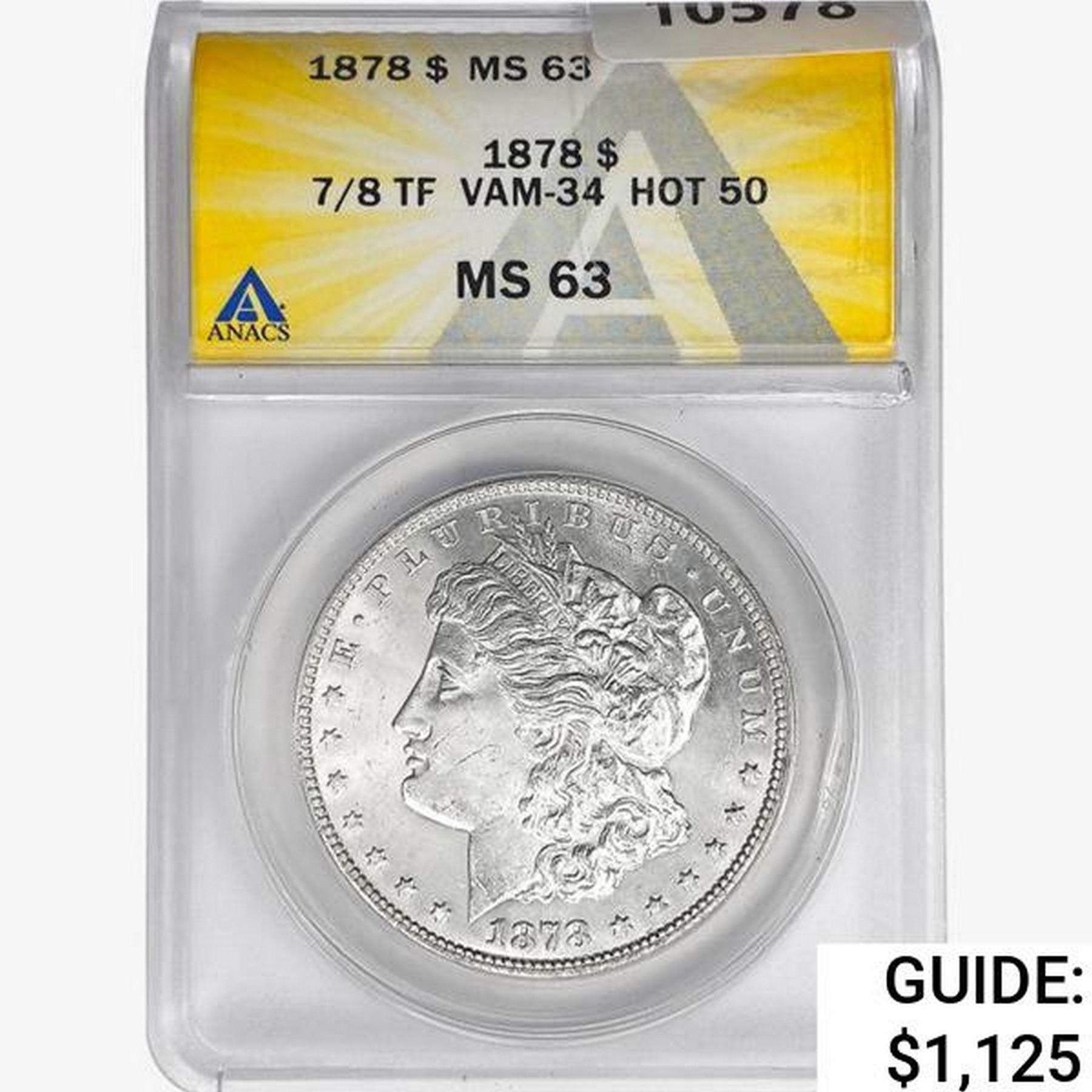 1878 7/8TF Morgan Silver Dollar ANACS MS63 VAM-34