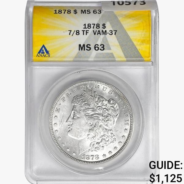 1878 7/8TF Morgan Silver Dollar ANACS MS63 VAM-37