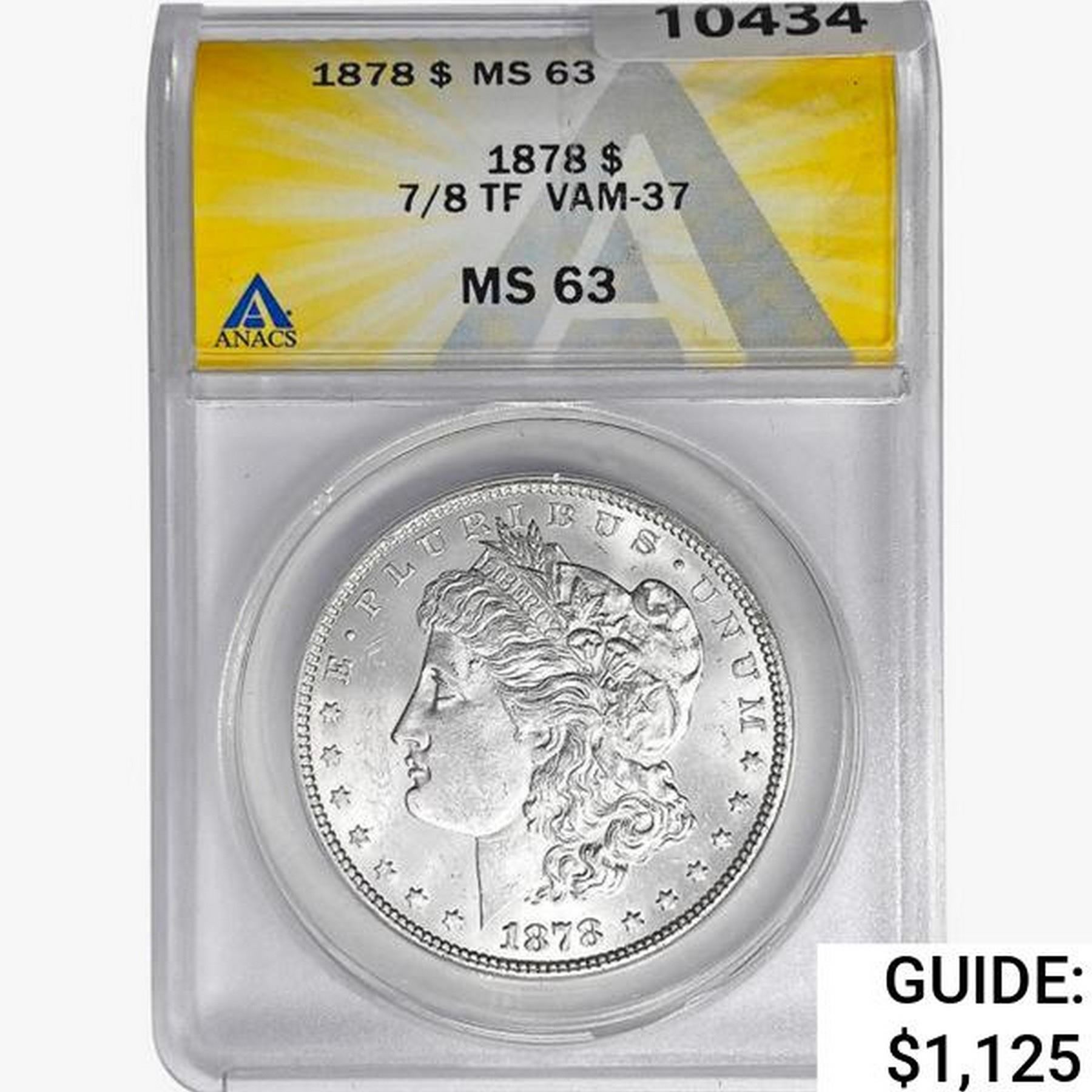 1878 7/8TF Morgan Silver Dollar ANACS MS63 VAM-37