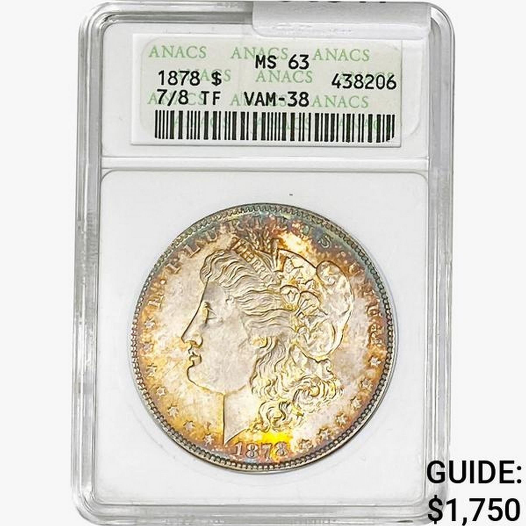1878 7/8TF Morgan Silver Dollar ANACS MS63 VAM-38