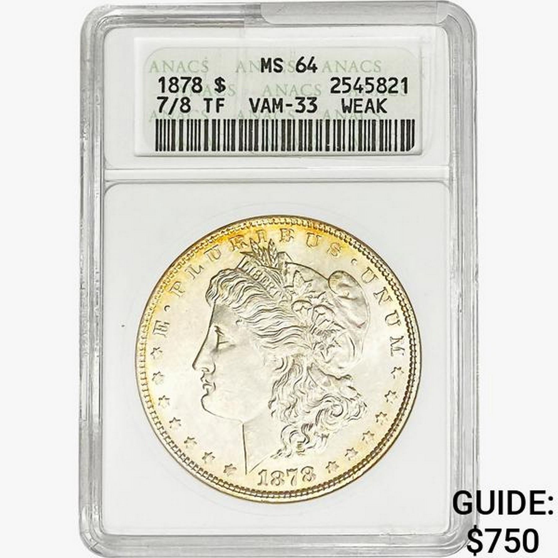 1878 7/8TF Morgan Silver Dollar ANACS MS64 VAM-33 Weak
