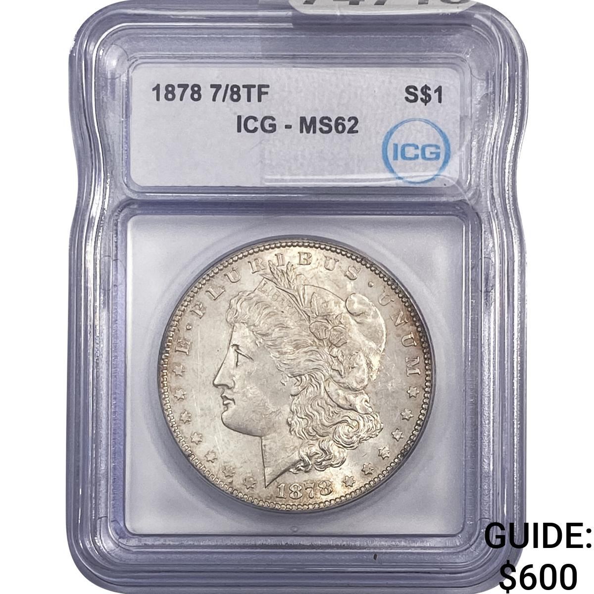 1878 7/8TF Morgan Silver Dollar ICG MS62