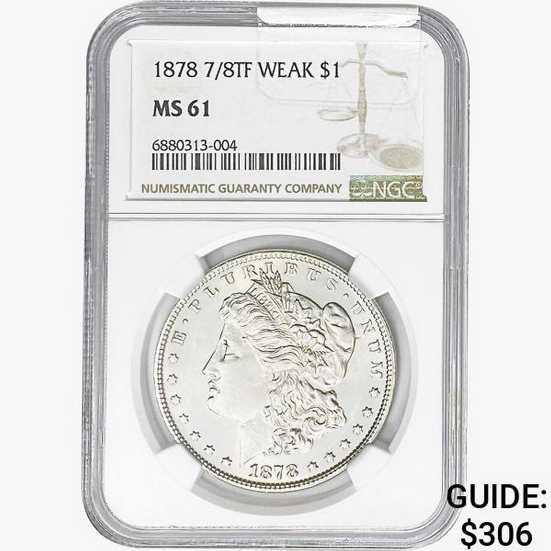 1878 7/8TF Morgan Silver Dollar NGC MS61 WEAK