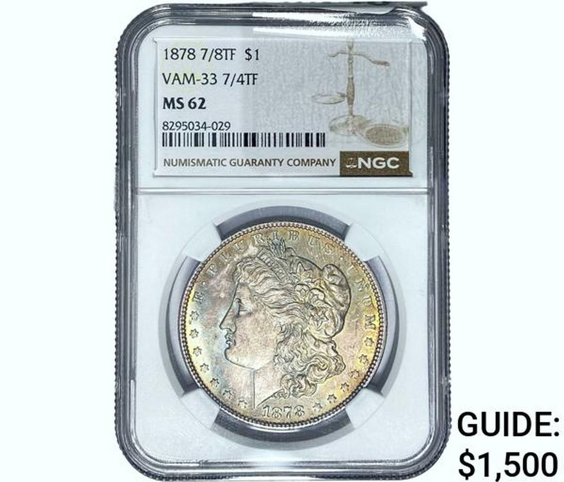 1878 7/8TF Morgan Silver Dollar NGC MS62 VAM-33 7/4TF