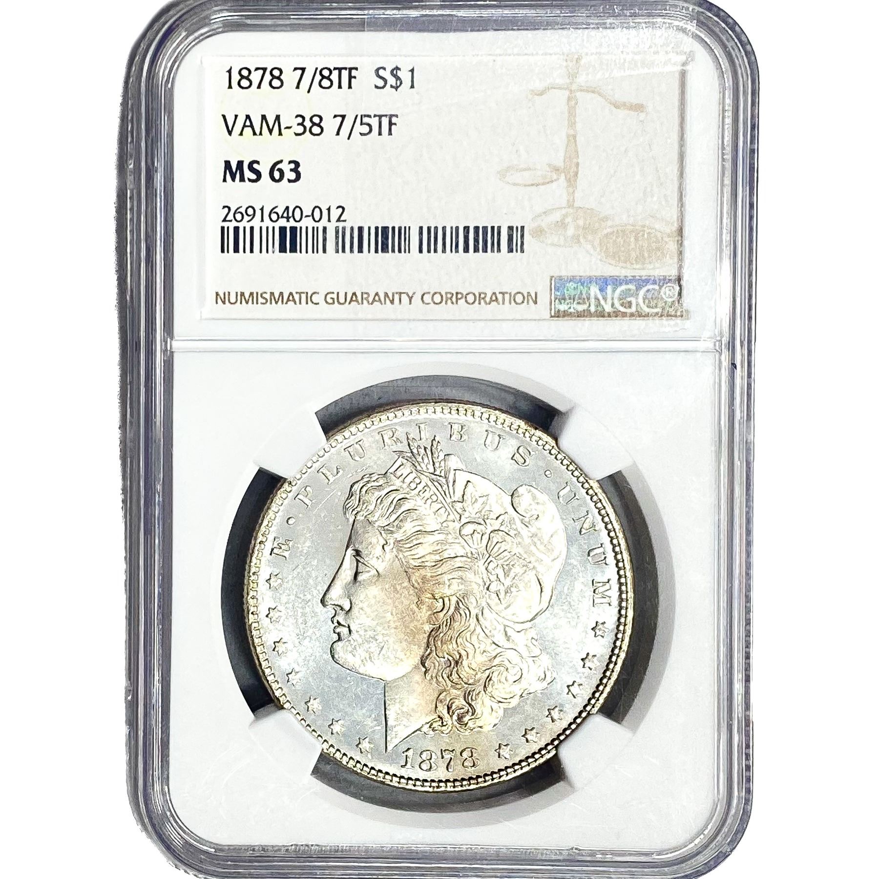1878 7/8TF Morgan Silver Dollar NGC MS63 VAM-38