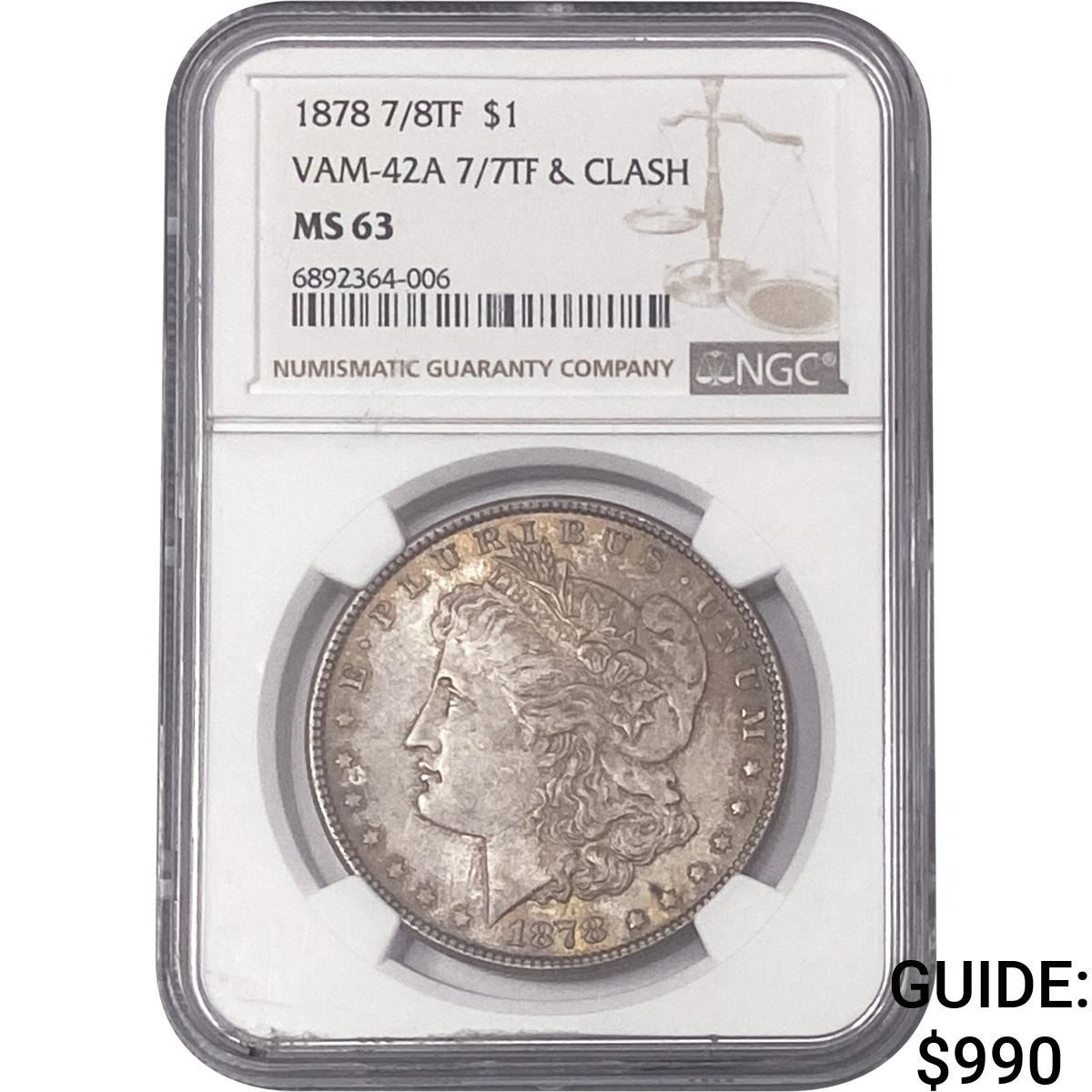 1878 7/8TF Morgan Silver Dollar NGC MS63 VAM-42A