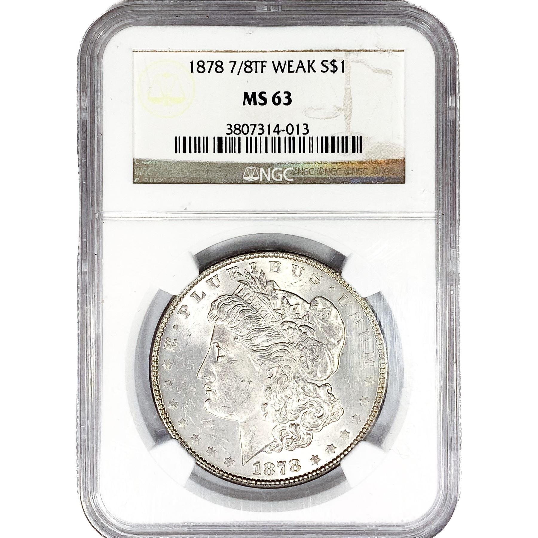 1878 7/8TF Morgan Silver Dollar NGC MS63 Weak