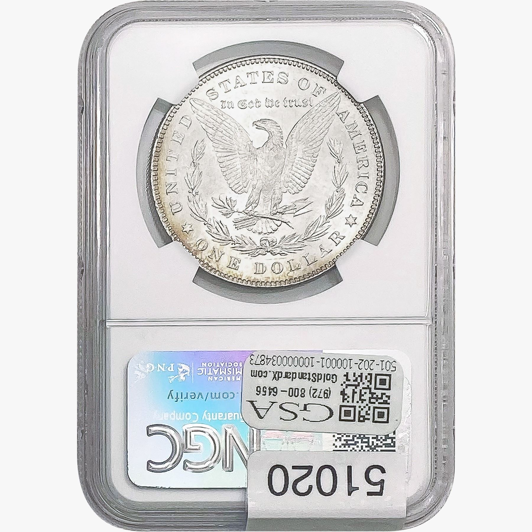 e. Coins sold referencing a third-party grading service are sold “AS IS” without any express or implied warranty, except for a guarantee by GSA that they are genuine. Removal or alteration of the holder, voids all of Bidder’s claims concerning that Product. Certain warranties may be available from the grading services and Bidders are referred to them for further details: Numismatic Guaranty Corporation (NGC), PO Box 4776, Sarasota, FL 34230, www.ngccoin.com/services/writtenguarantee.asp; Professional Coin Grading Services (PCGS), PO Box 9458, Newport Beach, CA 92658, www.pcgs.com/guarantee.html; ANACS, 6555 S. Kenton St., Ste. 303, Englewood, CO 80111; and Independent Coin Grading Co. (ICG), 7901 East Bellview, Ave., Suite 50, Englewood, CO 80111.
