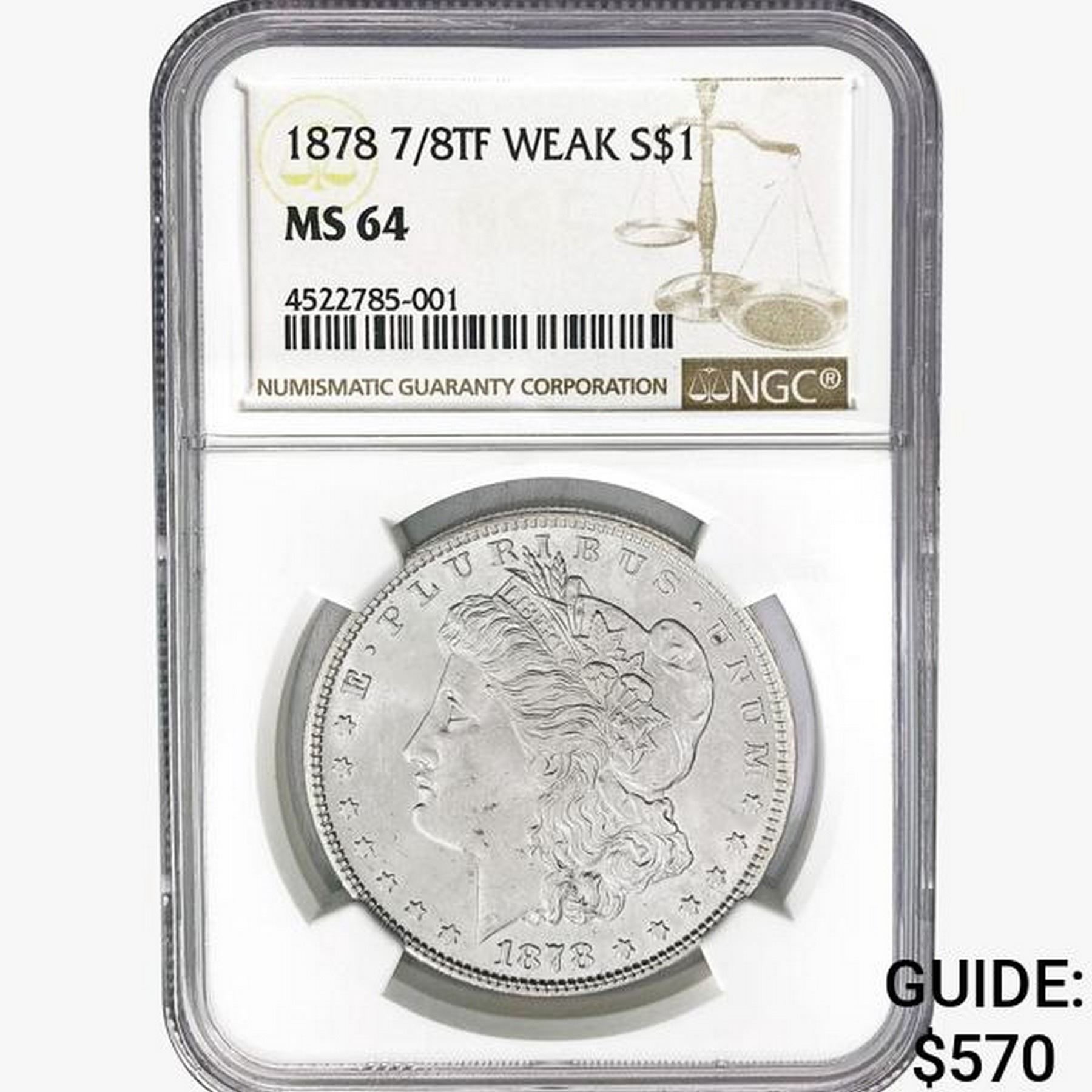 1878 7/8TF Morgan Silver Dollar NGC MS64