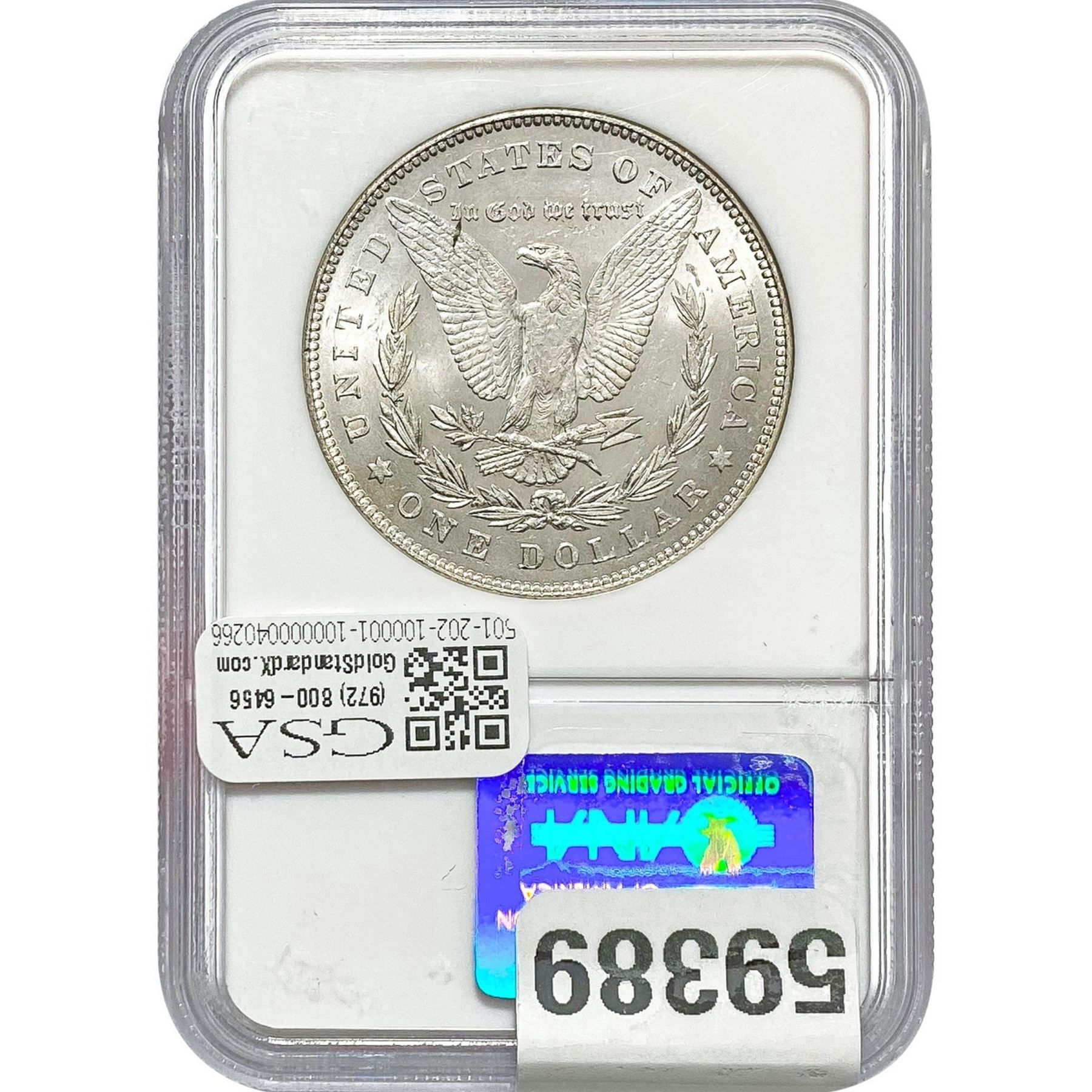 e. Coins sold referencing a third-party grading service are sold “AS IS” without any express or implied warranty, except for a guarantee by GSA that they are genuine. Removal or alteration of the holder, voids all of Bidder’s claims concerning that Product. Certain warranties may be available from the grading services and Bidders are referred to them for further details: Numismatic Guaranty Corporation (NGC), PO Box 4776, Sarasota, FL 34230, www.ngccoin.com/services/writtenguarantee.asp; Professional Coin Grading Services (PCGS), PO Box 9458, Newport Beach, CA 92658, www.pcgs.com/guarantee.html; ANACS, 6555 S. Kenton St., Ste. 303, Englewood, CO 80111; and Independent Coin Grading Co. (ICG), 7901 East Bellview, Ave., Suite 50, Englewood, CO 80111.