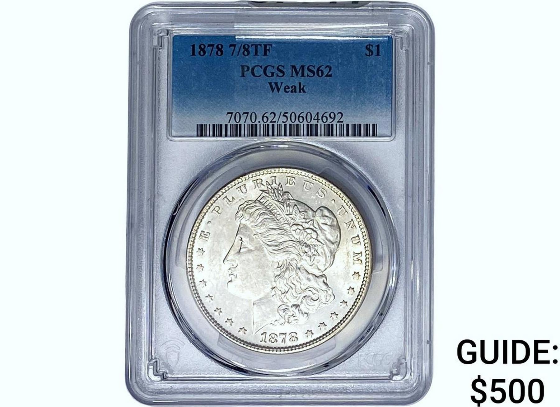 1878 7/8TF Morgan Silver Dollar PCGS MS62 Weak