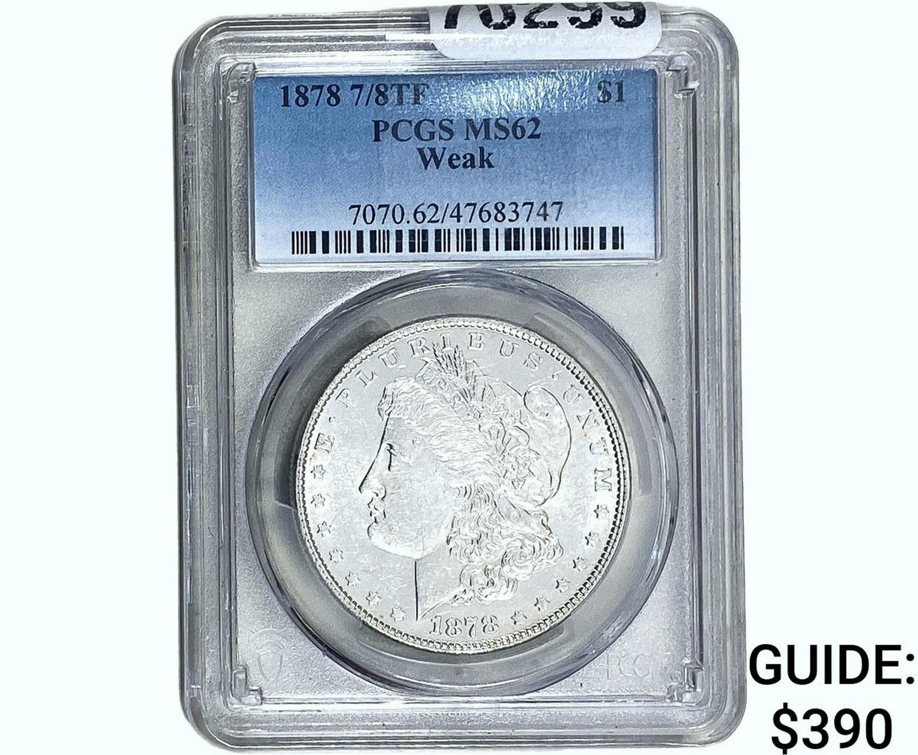 1878 7/8TF Morgan Silver Dollar PCGS MS62 Weak