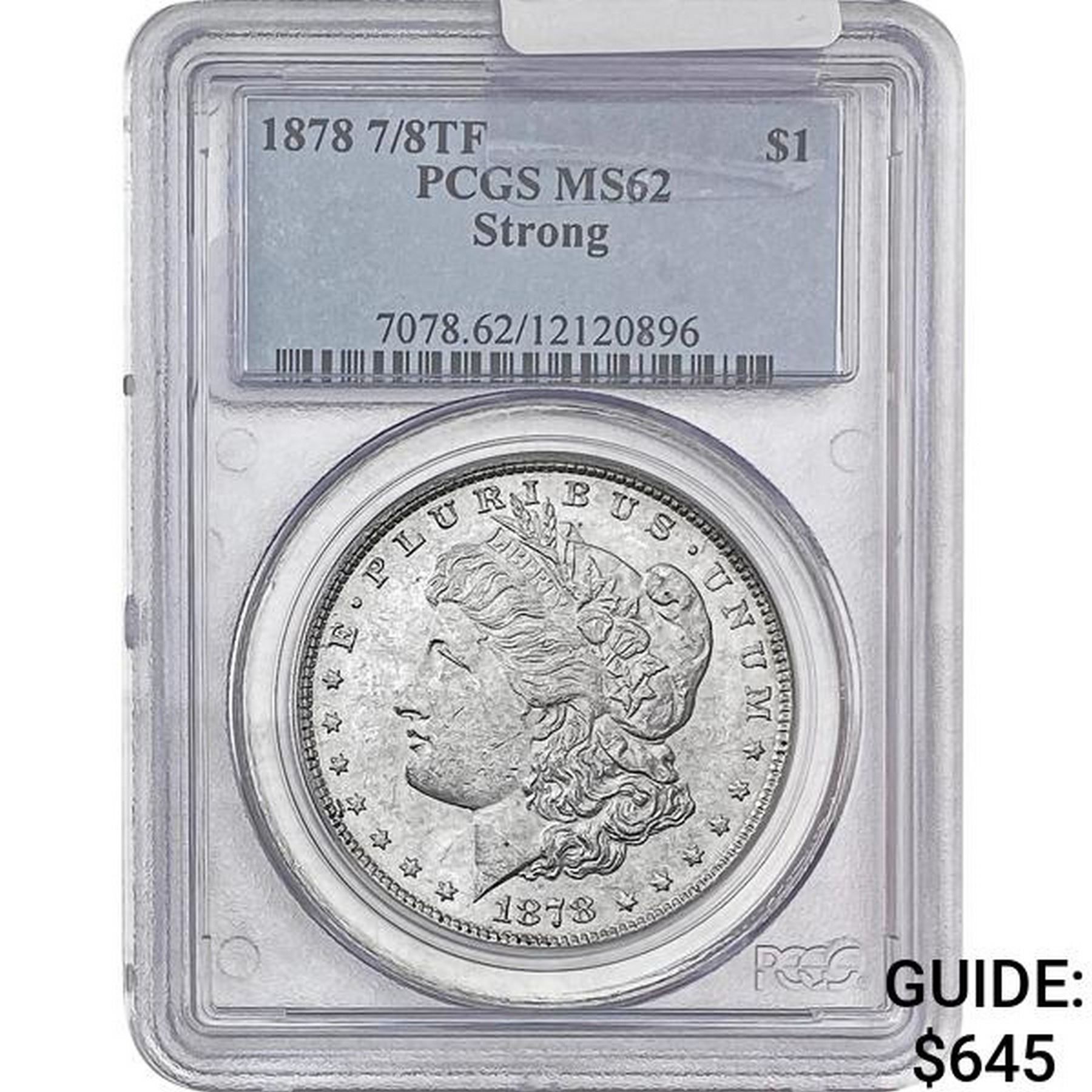 1878 7/8TF Morgan Silver Dollar PCGS MS62