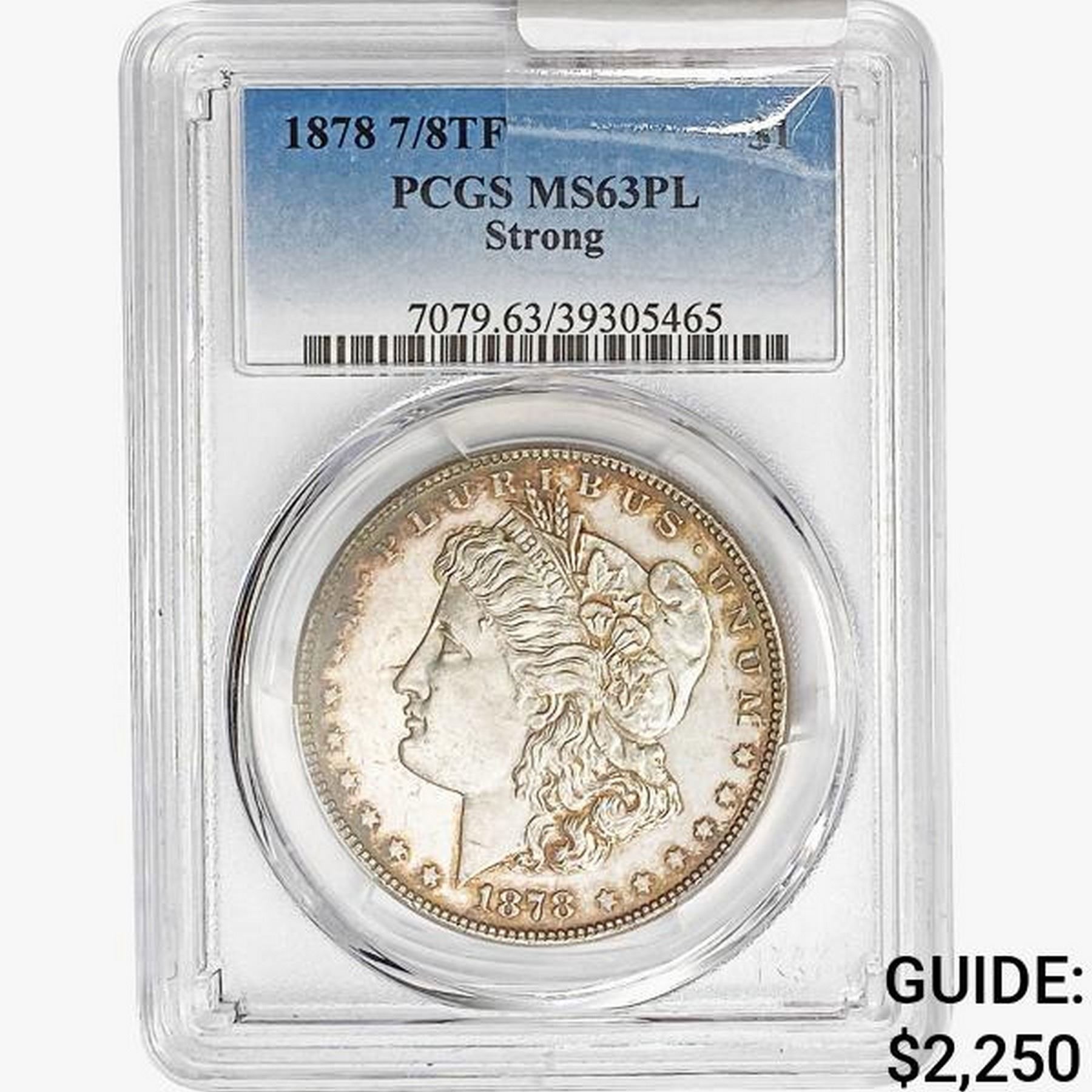 1878 7/8TF Morgan Silver Dollar PCGS MS63 PL Stron