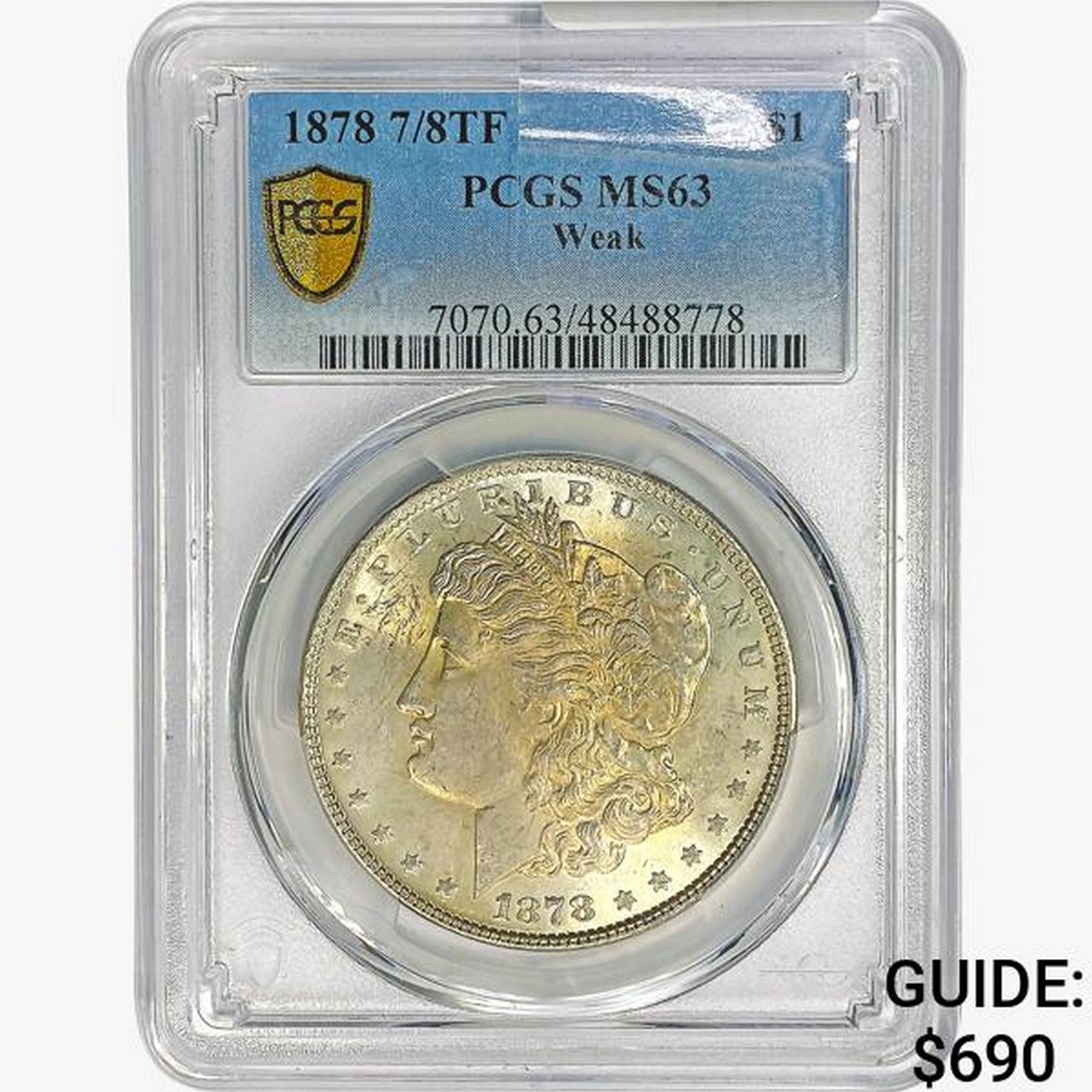 1878 7/8TF Morgan Silver Dollar PCGS MS63 Weak
