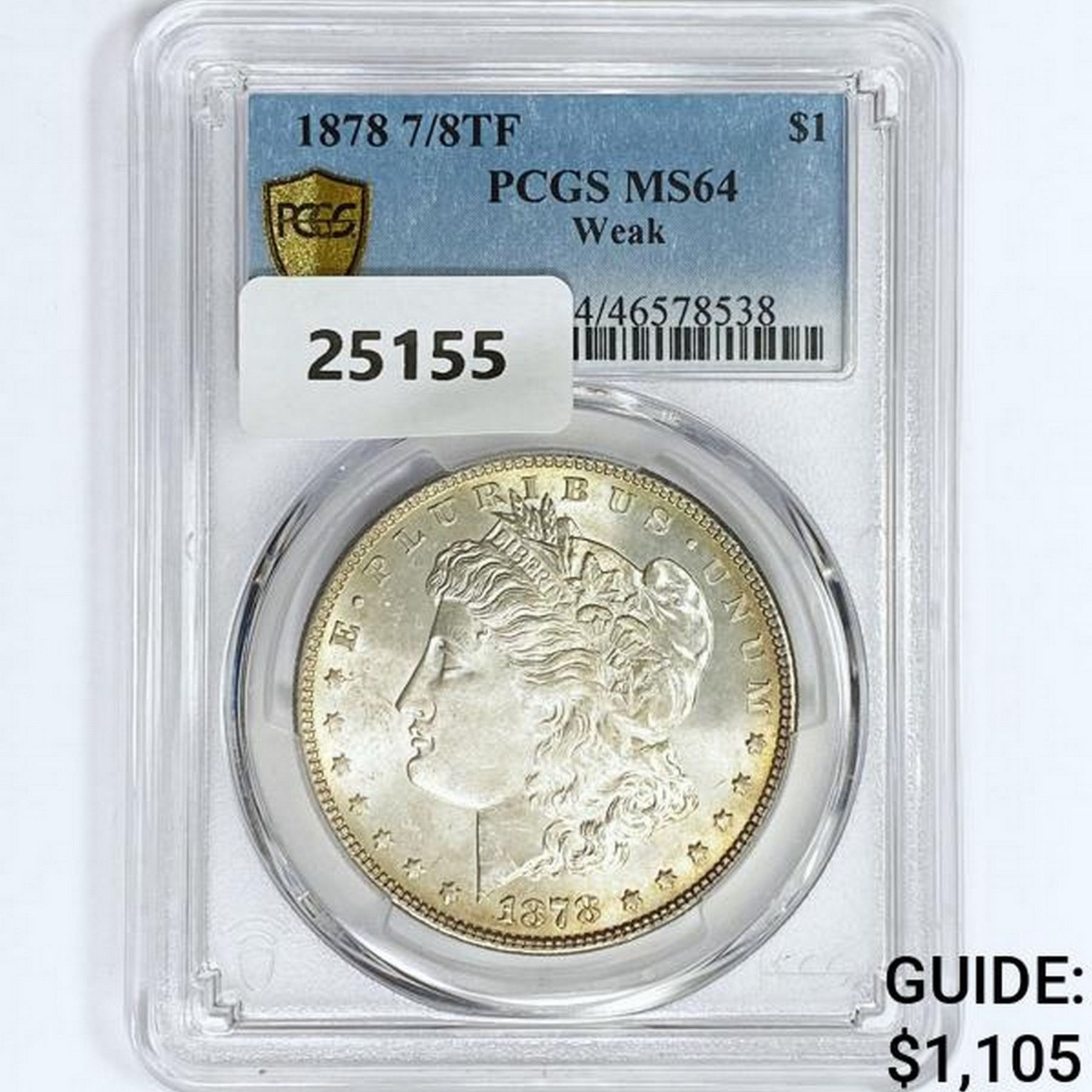 1878 7/8TF Morgan Silver Dollar PCGS MS64 Weak