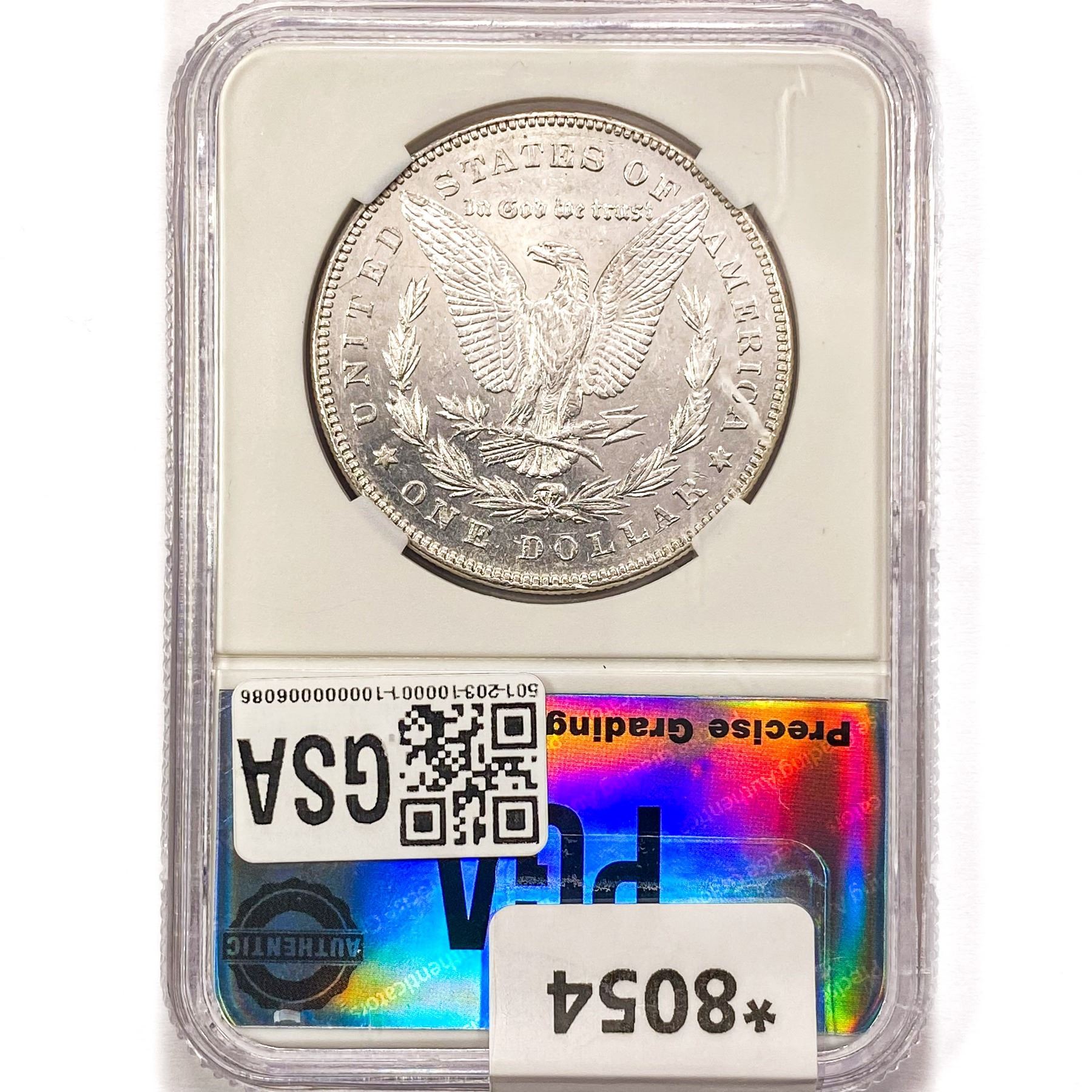 l. All non-certified coins and currency are guaranteed genuine, but are not guaranteed as to grade, since grading is a matter of opinion, an art and not a science, and therefore the description rendered by GSA or any third-party grading service may not agree with the opinion of others (including trained experts), and the same expert may not grade the same item with the same grade at two different times. GSA may, but is not obligated to, express an opinion as to non-certified numismatic items, in GSA’s opinion, or by its employees’ experience and the current interpretation of the American Numismatic Association’s standards as of the date the catalog was prepared. There is no guarantee or warranty expressed or implied that the grading opinions utilized by GSA, if any, will meet the standards of any grading service at any time in the future.