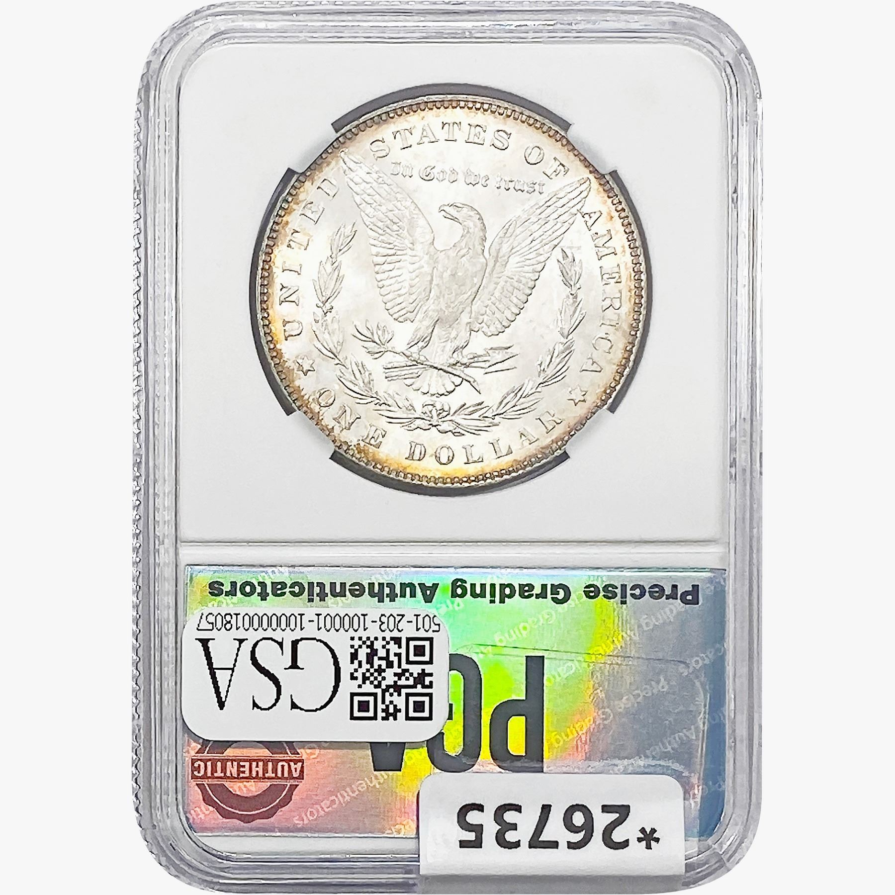 COINS AND CURRENCY LISTED IN GSA’S CATALOG AS GRADED AND ENCAPSULATED BY PCGS, NGC, ANACS, ICG, PCGS CURRENCY, PMG, PCGS BANKNOTE GRADING, CMC OR ANY OTHER THIRD-PARTY GRADING SERVICE ARE LIKEWISE SOLD “AS-IS” EXCEPT AS EXPRESSLY SET FORTH HEREIN. ALL THIRD-PARTY GRADING SERVICE GUARANTEES, INCLUDING AUTHENTICITY, ARE THE SOLE RESPONSIBILITY OF THE THIRD-PARTY GRADING SERVICE AND NOT WARRANTIES OR GUARANTEES OF GSA. BIDDERS SHOULD CONTACT THESE THIRD-PARTY GRADING SERVICES DIRECTLY WITH RESPECT TO ANY CLAIMS OR QUESTIONS THEY MAY HAVE CONCERNING THEIR GUARANTEES AND WARRANTIES. BIDDERS ACKNOWLEDGE AND AGREE THAT AUCTIONEER IS NOT BOUND BY OR LIABLE FOR ANY OPINION OR CERTIFICATION BY ANY THIRD-PARTY GRADING SERVICE. REMOVAL OF A PRODUCT FROM ITS PROTECTIVE CASING OR HOLDER OR ALTERATION OF ANY COIN HOLDER WAIVES ALL RIGHTS CONCERNING THE PRODUCT CONTAINED THEREIN.
