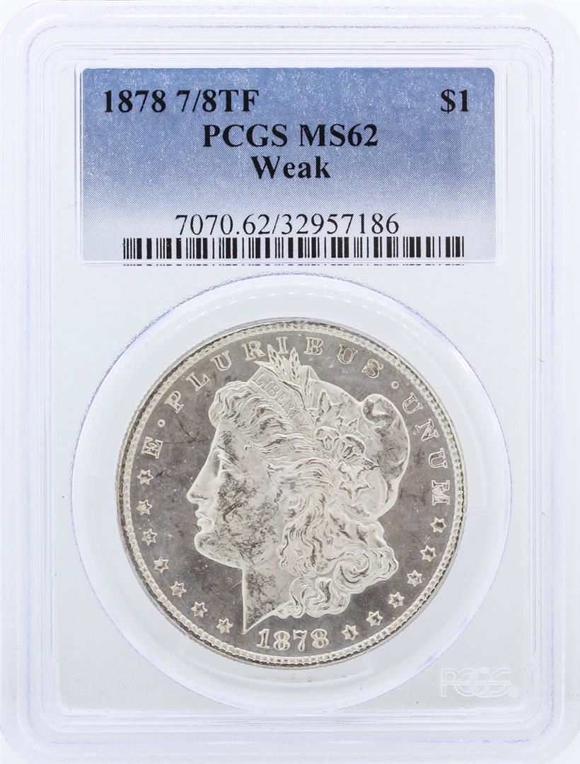 One 1878 7/8TF PCGS MS62 Weak Morgan Silver Dollar. PCGS Certified.