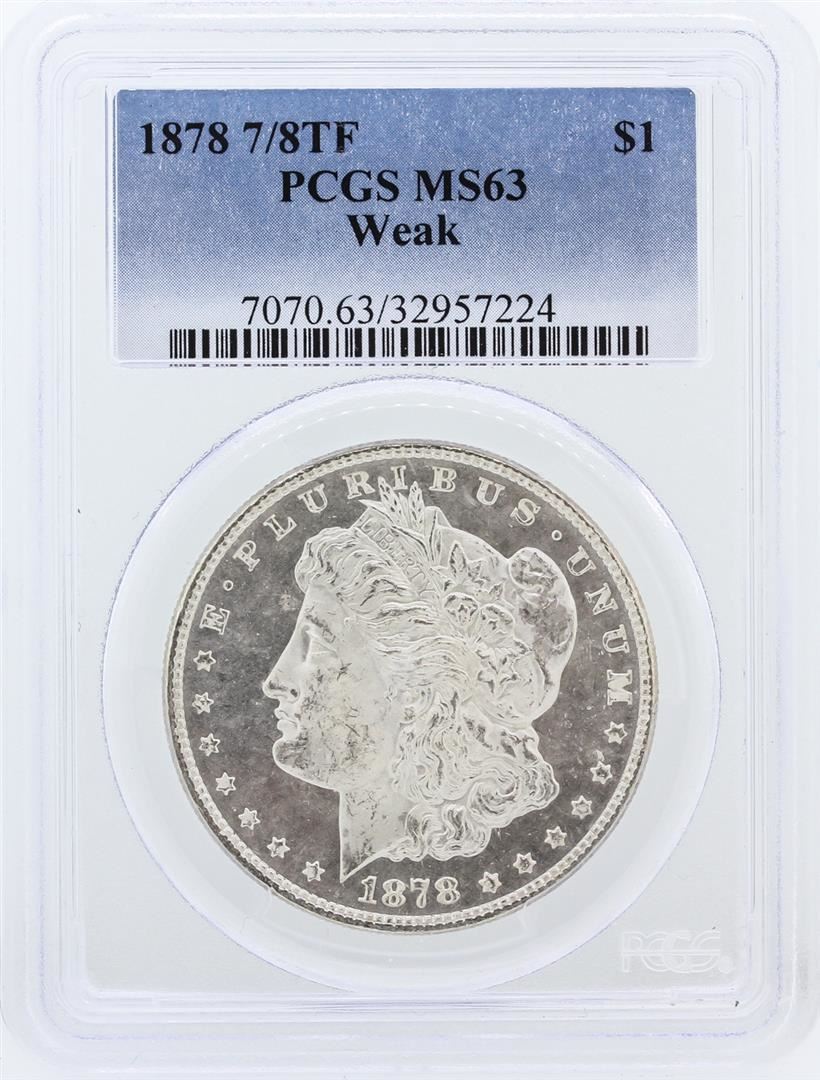 One 1878 7/8TF PCGS MS63 Weak Morgan Silver Dollar. PCGS Certified.