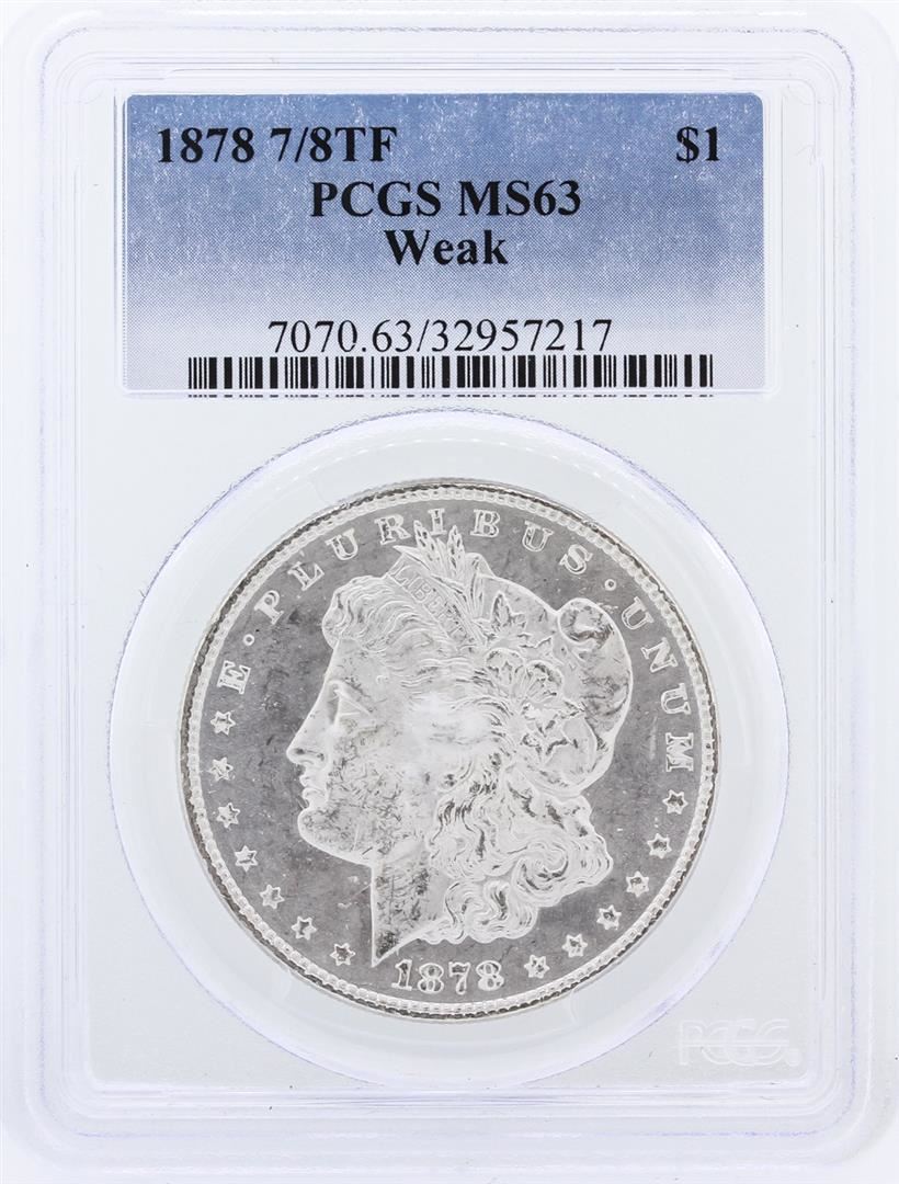 One 1878 7/8TF PCGS MS63 Weak Morgan Silver Dollar. PCGS Certified.