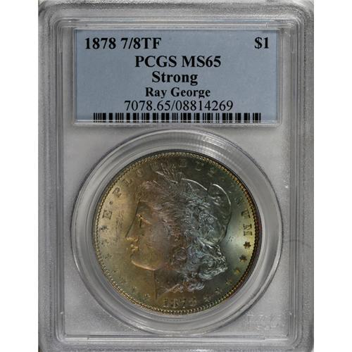 <B>1878 7/8TF S$1 Strong MS65 PCGS.</B></I> VAM-37. Beautiful gold, aqua-blue, lemon, and plum bands progress across the obverse, while the reverse is only lightly toned in cream and gold tints. Well preserved aside from a minor graze on the left obverse field.<BR><I>From The Cocoa Beach Collection.</B></I><BR><BR><b>Shipping:</b> Coin/Currency (<a target="_blank" href="http://www.heritageauctions.com/common/shipping.php">view shipping information</a>)